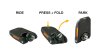 Abgesenkte Trittfläche auf Nulllinie der Pedalachse, kompaktes Faltmaß, leichte intuitive Bedienung, rutschfestes Griptape, geschmiedetes Aluminium, hochwertige Stahllegierung-Achse, Zentrallager, zweireihiges Schrägkugellager, Igus Gleitlager im Klappmechanismus