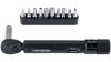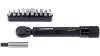 SB-verpackt, mit Ratschen-Steckschlüssel, nur 148 mm lang, Aluminium, leicht einstellbares Drehmoment durch Drehung am Griff, die besonders kleine Bauform ist gut für Unterwegs geeignet, inkl. einem 10-teiligen Bit-Satz (2/3/4/5/6/8 mm Innensechskant, T25/T30 Innensechsrund, Schlitz- / Kreuzschraubendreher und 6 mm Innensechskantverlängerung)