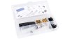 Bestehend aus: 2 Spritzen, 2 Schläuche, 25x Überwurfmutter 5,0 Ø, 50x Klemmring (Olive), 50x Leitungsnippel (Pin), Leitungsschneider, 2x Entlüftungsklotz