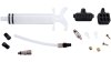 Bestehend aus: 2 Spritzen, 2 Schläuche, 20x Überwurfmutter Ø 5,0, 20x Überwurfmutter Ø 5,5, 50x Klemmring (Olive), 50x Leitungsnippel (Pin), 1x Entlüftungsklotz 4 mm, 1x Entlüftungsklotz 5 mm