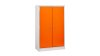 Sicherheitsschrank zur Lagerung von Lithium-Ionen-Batterien und -Akkus, in Deutschland gefertigt, Außen- und Innenmaterial nicht brennbar, Feuerwiderstandsfähigkeit 90 Minuten, Korpus grau, Türen in Orange, 2- flügelige Tür und abschließbar, sichere 2 - Punkt - Verriegelung für einen optimalen Zugriffschutz, Sockelblende abnehmbar, kann mit Hubwagen unterfahren werden, Stellfüße zur Ausrichtung und zum Niveauausgleich, Erdung gegen elektrostatische Aufladung, Be- und Entlüftung auf der Schrankoberseite, 4 Lagerebenen.