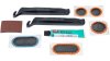 Für MTB-Schläuche, Inhalt: 2 x Flicken Gr. F1 (0.355.101/7), 1 x Flicken Gr. F2 (0.355.105/8), 1 x Mantelflicken oval, 1 x Flicken Gr. 0 (0.355.102/5), 1 Tube Vulkanisierflüssigkeit 5 g (0.355.181/9), 2 Reifenheber, Rauhpapier, Anleitung