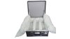 Spezialbehälter aus Aluminium für bis zu 3 Lithium-Batterien (UN 3480) bis jeweils 814 Wh. Ausgestattet mit feuerfestem Polster- und Aufsaugmaterial aus texturierten Glasfasern, 3 vollverschweißten Aluminiumprofilrahmen und einer staubfreien Innenausstattung. Umlaufende Sicken und Ecksicken für zusätzliche Formstabilität. Maße (BxTxH): 600 x 600 x 250 mm (außen), 550 x 550 x 220 mm (innen), Volumen: ca. 67 l, max. Bruttomasse Gefahrgutzulassung: 65 kg.